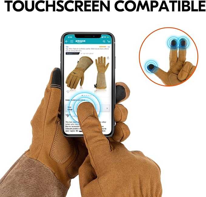 Vgo... Safety Work Gloves Men, Extended Pig Split Leather Cuff,Synthetic Leather, Rose Pruning Thorn Proof,Gardening (1 Pair,Size XL, Brown,SL6592M)