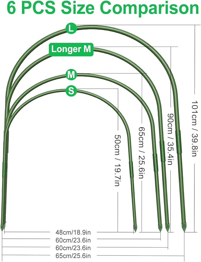 FOTMISHU 6Pcs Greenhouse Hoops, 23.6" x 25.6" Garden Hoops Rust-Free Grow Tunnel 4.9ft Long Steel with Plastic Coated Support Hoops Frame for Garden Fabric, Plant Support Garden Stakes