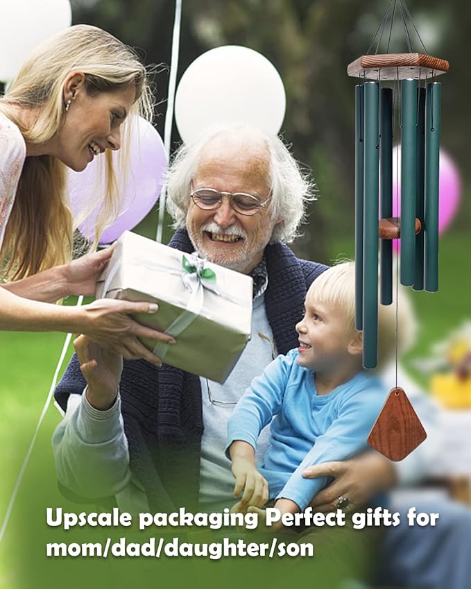 - Large Wind Chimes Outdoor Deep Tone- Green is a vibrant color for your decor. Total hanging overall length is 44” with a stronger metal hook. The longest tube is 23.6''. Big wind chimes produce lower, fuller ,deep tone.6 aluminum powder-coated tubes are hand-tuned by our professional tuning experts to achieve a superior musical performance. Heavy duty nylon cording high density beech wood striker made from FSC-Certified wood.