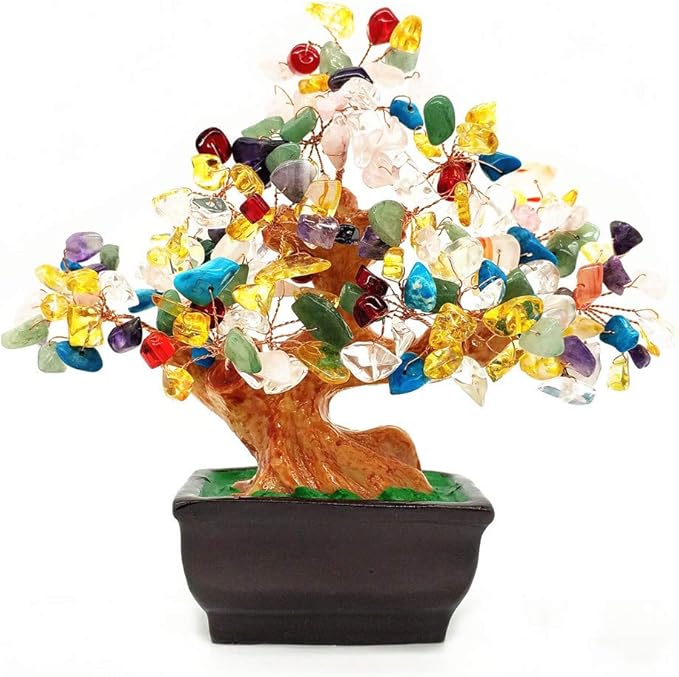 Feng Shui Quartz Crystal Money Tree Bonsai Style Decoration for Luck and Wealth (Multicolor)