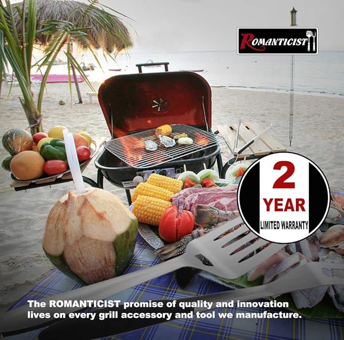 - Premium Grill Accessories for Grill Masters - Containing really reliable grill tools like spatula, fork, tongs and basting brush, ROMANTICIST BBQ grill tool set is beloved by professional chefs for its exquisite craftsmanship and exceptional performance. An essential grill set is approved by Pro for everyday grill.