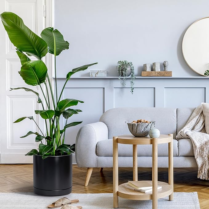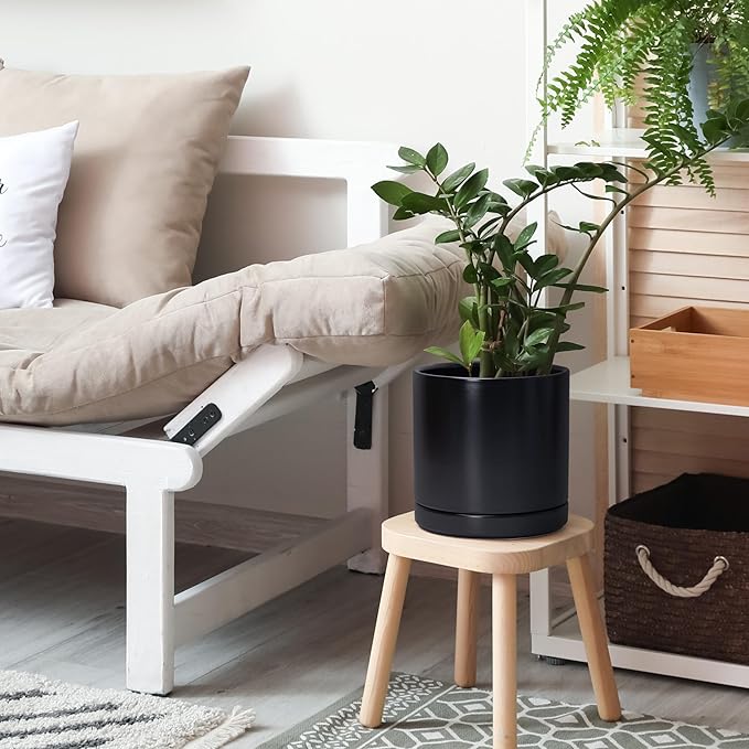 D'vine Dev 8.2 Inch & 10 Inch Ceramic Planter Pot for Plants with Drainage Hole and Saucer, Large Plant Pots Set, Black, 94-G-L-2
