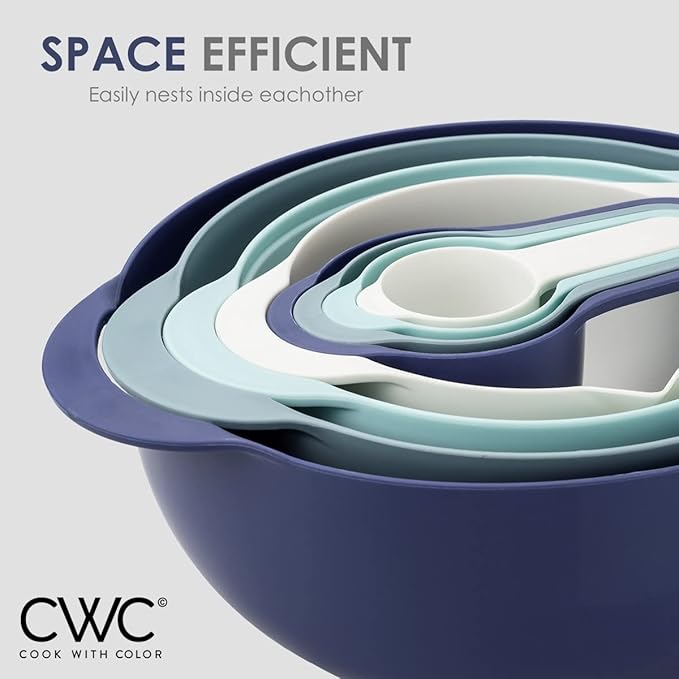 COOK WITH COLOR 8Pc Nesting Bowl Set, Teal - Includes 2 Mixing Bowls, Colander, Sifter, 4 Measuring Cups, Polypropylene, Dishwasher Safe, BPA Free