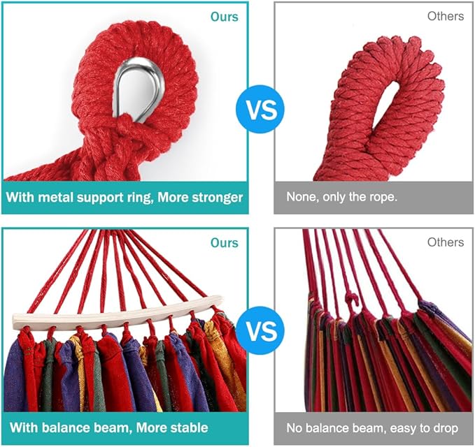 - 【Versatile outdoor hammock】Whether you want to set it up in your backyard, garden, poolside, or take it to the beach, this hammock for outside is perfect for various outdoor relaxation and leisure moments. Please note that the stand is not included.
