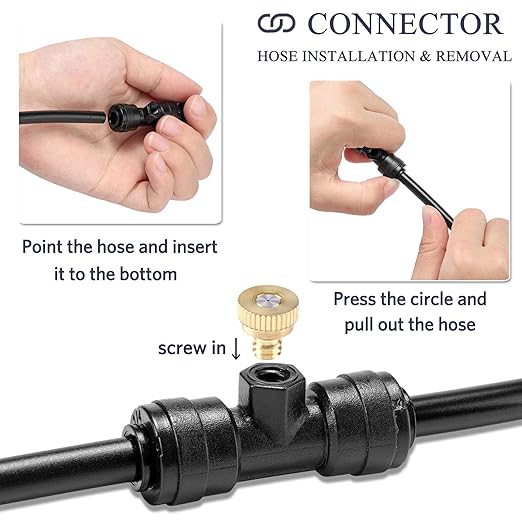 - 【Wide Application】 – Misting cooling system widely apply for garden, trampoline water park, landscaping, greenhouse, humidification, outdoor cooling system, epidemic prevention, spraying disinfectant, deodorant air purification, swimming pool misting fog cooling, mist mosquito system and so on.