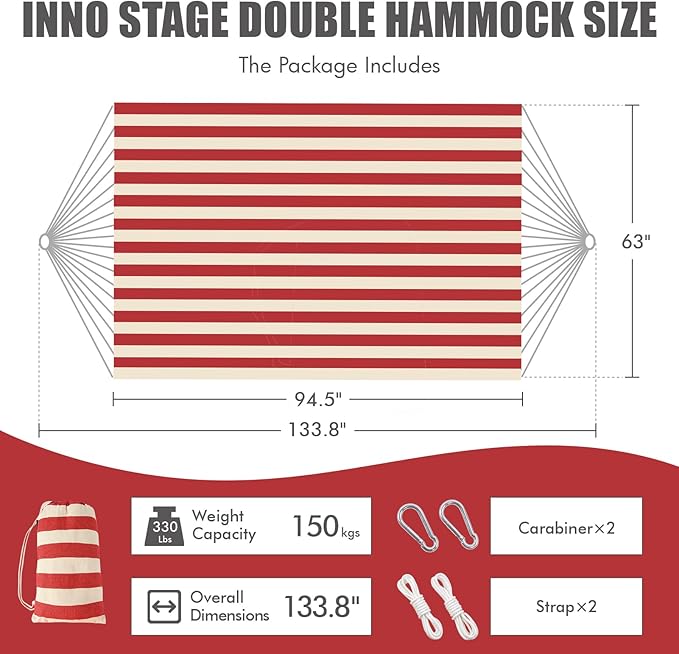 - Double size and bearing for most person - double person hammock is 118.3" long x 63" wide. and bed size is 94.5" long x 63" wide with a 350LBs capacity, created in the style that has been handed down for generations by native artisans in Northeastern Brazil, making it cozy and soft.