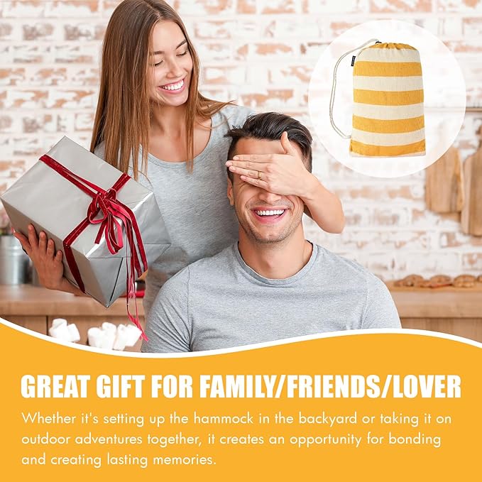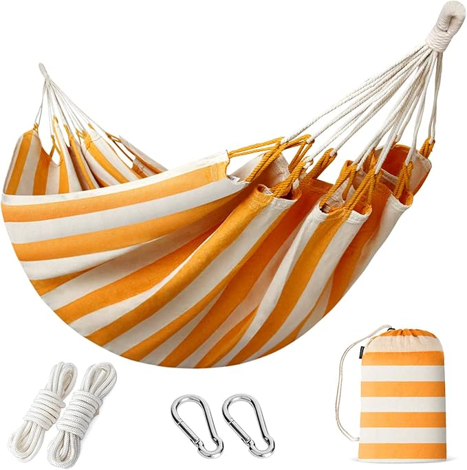 INNO STAGE Brazilian Double Hammocks - Woven Hammock Two Person Hanging Camping Bed for Patio, Backyard, Porch, Outdoor and Indoor Use - Soft Canvas Hammock with Portable Carrying Bag Yellow
