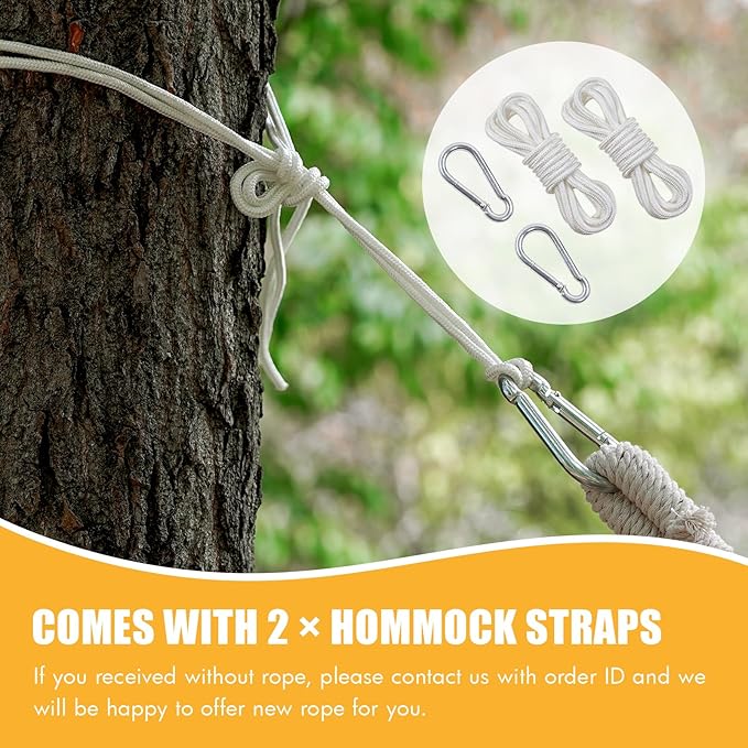 - Double brazilian hammock - the swaying motion of the strong nylon rope which joint is specially weaved according to physics rules in order every string stand the same weight. breathable and heavy duty canvas tightly woven fabric make it be a comfortable cocoon style hammock, can keep you safe and enjoy a happy leisure time.(hanging straps no include)