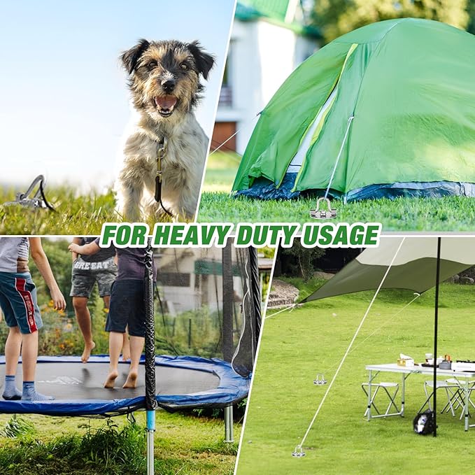 - MULTIPLE APPLICATIONS - You can easily use our yard anchor, it can be applied in many places, such as metal fences and wooden fences, dogs, sheds, car ports, gazebos, travel trailers, trampolines, cabins, garages, mobile homes, small buildings, playground sets, Children's swing, slide, deer stand, canopy, camping, etc.