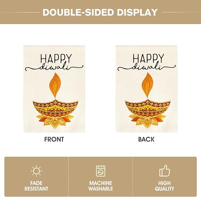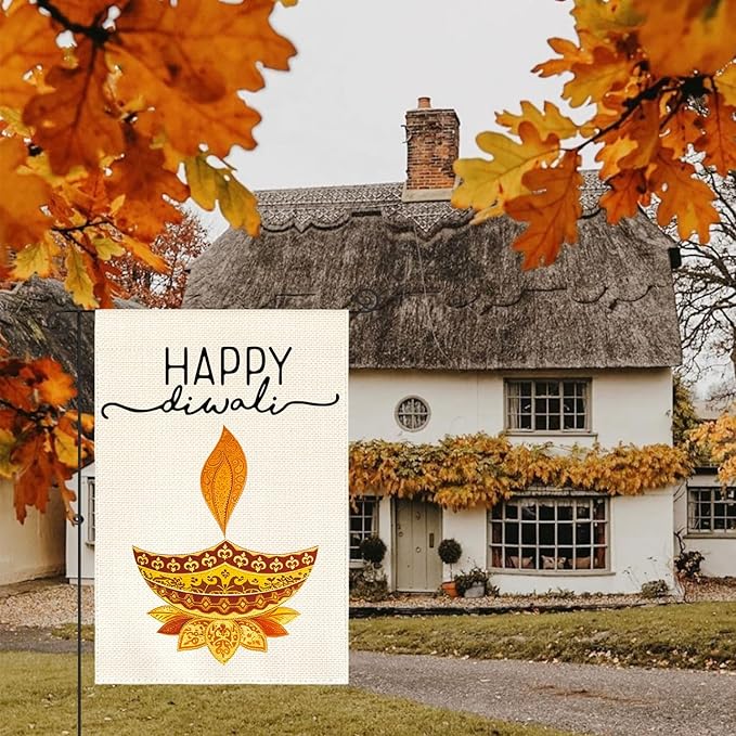 AVOIN colorlife Happy Diwali Garden Flag Vertical Double Sided, Oil Lamp Lotus Yard Outdoor Decoration 12 x 18 Inch