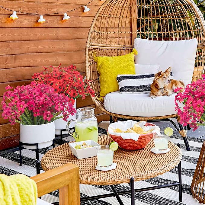- 🌹【Multi-Functional Decoration】- Designed for outdoor decoration. These lifelike flowers lend gorgeous charm to your front porch, walkway, patio, and garden; faux flowers are perfect for everyday decoration, birthdays, holidays, weddings, memorial sites, DIY projects, etc