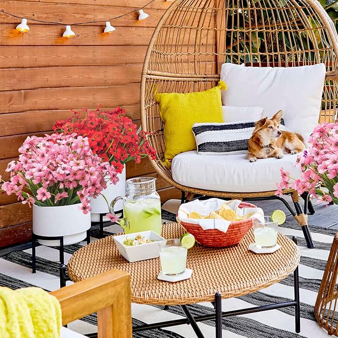 - 🌹【Multi-Functional Decoration】- Designed for outdoor decoration. These lifelike flowers lend gorgeous charm to your front porch, walkway, patio, and garden; faux flowers are perfect for everyday decoration, birthdays, holidays, weddings, memorial sites, DIY projects, etc