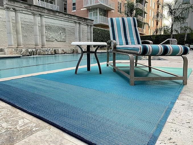 Fab Habitat Outdoor Rug - Waterproof, Fade Resistant, Crease-Free - Premium Recycled Plastic - Ombre - Porch, Deck, Balcony, Mudroom, Laundry Room, Patio - Big Sur - Teal - 3 x 5 ft