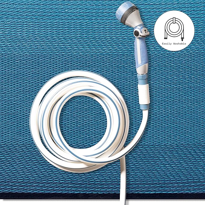 - Waterproof rug - These durable rugs for outdoors do not absorb moisture, are stain resistant and are easy to clean with a hose. UV resistant for long lasting colors and comes with 1 - year warranty