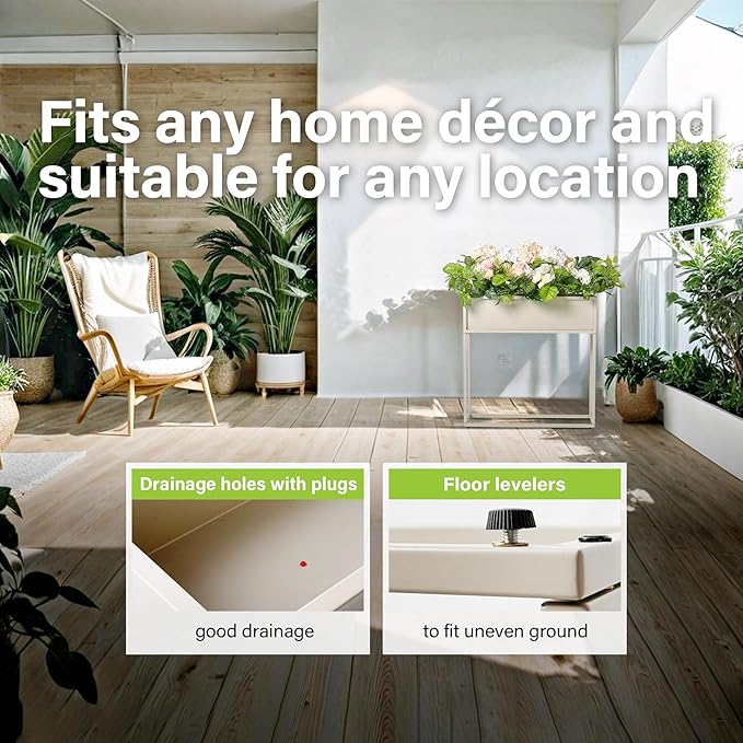 - ✅ Efficient Drainage - Each indoor or outdoor planter box stand features an effective drainage system, including two drainage holes with a plug, ensuring your plant beds outdoors receive the perfect amount of water without the risk of overwatering.