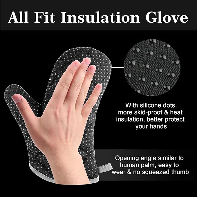 - 【Bonus a Universal Fit Grill Glove - Protects Your Hand】Specially designed with silicone dots, more skid-proof and heat insulation; With the opening angle similar to human palm, provides more comfortable use space for palm, won’t feel cramped; Length covers your wrist, fits all size hands; Great for grilling/cooking/baking/etc. occasions;
