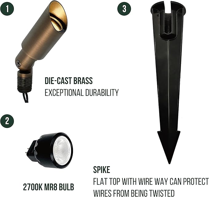- EASY INSTALLATION: Insert the ABS ground spike into the suitable position on ground. It also comes pre-wired with 36 inch direct burial low voltage wire cable that does not require addition piping to install.