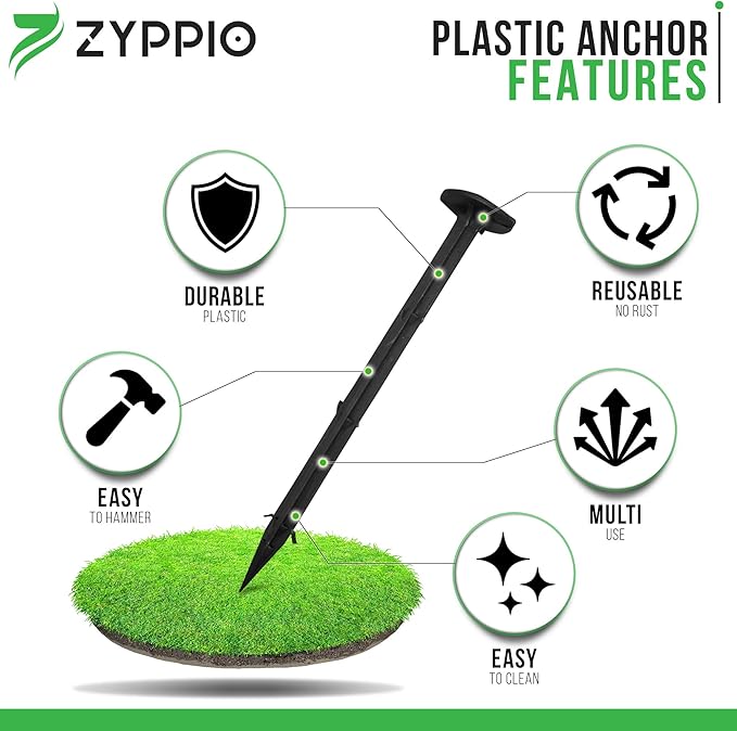 - Heavy-Duty Plastic Anchors – Every mulch garden barrier includes 15 plastic ground anchors to help secure it safely in place. It helps prevent the mulch from moving, shifting, or rolling up during high winds or intense weather.