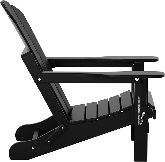 WO Home Furniture Adirondack Chairs Table Set of 3 PCS Outdoor Folding Chairs Coffee Table Weather/UV Resistant for Lawn, Garden, Bon Fire, Balcony (Black)