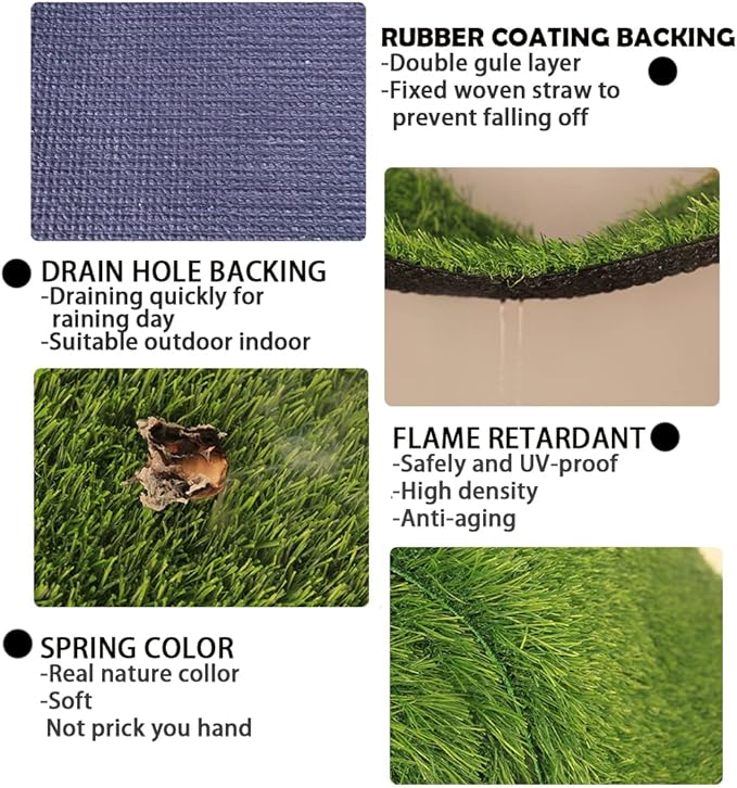 - 【Multi purposes】 - Artificial Grass Turf lawn ,limited only by your imagination, perfect for outdoor decor, such as garden, lawn, patio, landscape, backyard, deck, balcony, porch and other outdoor place. Also used as mat, carpet, doormats in indoor home.If you have any problem ,please contact us freely.