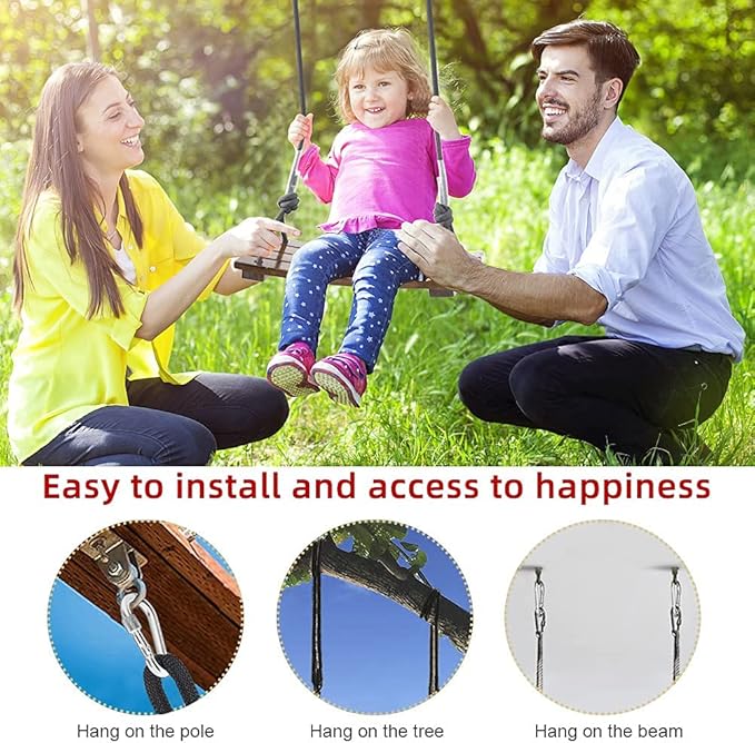 - Maximum Load 440 LBS of Carbonized Swings: High temperature carbonized material can withstand sun, wind and snow; PELLOR wood swing comes with 6.6 feet adjustable rope, galvanized metal rings and accessories, easy to hang on tree branches or beams