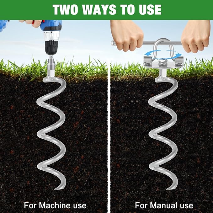 - EASY INSTALLATION AND USE - You only need to push the ground screw anchor head of the garden spiral stake into the ground, and you can directly rotate it by hand or electric drill until the spiral anchor is fully inserted into the ground. Outdoor spiral ground anchors are sturdy, very convenient to use, and very safe. This outdoor Spiral anchor is a good helper for your life.