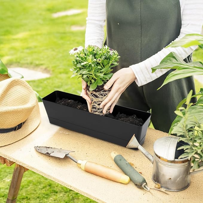 - 【Simple but Modern Window Box】The minimalist black rectangle planter blends seamlessly into any decor. Perfect for DIY customization or adding labels. Set includes 1 planter (plants not included).
