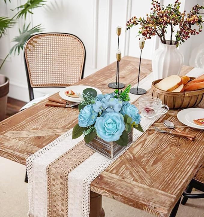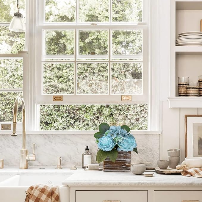 - PERFECT GIFT - These potted flowers are not only good for home decor indoor but also Give these Flower Arrangements with the wooden vase as a gift for housewarming parties, birthdays and Christmas. An ideal choice for window, coffee table, bookshelf, kitchen, hotel, office, bedroom, farmhouse, backyard, balcony decoration
