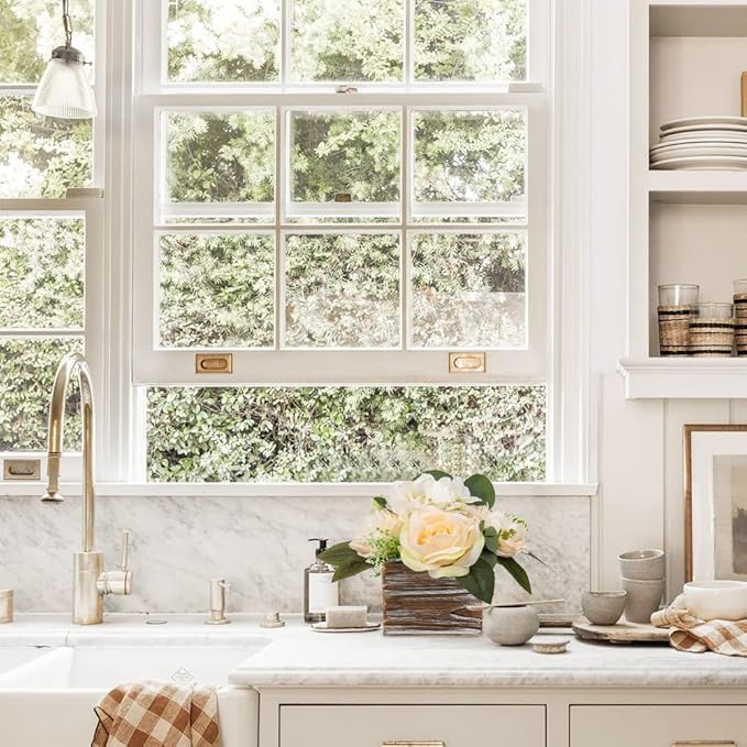 - PERFECT GIFT - These potted flowers are not only good for home decor indoor but also Give these Flower Arrangements with the wooden vase as a gift for housewarming parties, birthdays and Christmas. An ideal choice for window, coffee table, bookshelf, kitchen, hotel, office, bedroom, farmhouse, backyard, balcony decoration