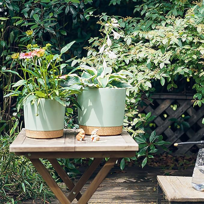 kubvici Plant Pots for Indoor Plants, 2 Pack 10 Inch Plant Pot Plastic Flower Pots Planters with Drainage Saucer for Indoor Outdoor Garden Home (10" Green & White)