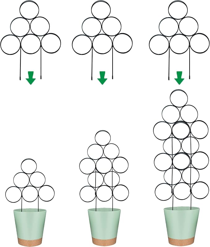 - Easy To Assemble And Use: No tools required, just pierce the bottom of the small garden trellis deeply into the soil and plant will grow up on it. You can stack 2 or 3 layers with cable ties to increase the growth length of plant vines