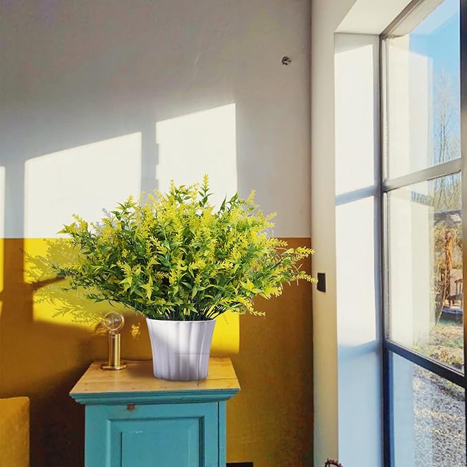 RECUTMS 12 Bundles Artificial Flowers Outdoor UV Resistant Outdoors Fake Plants Faux Plastic Flower in Bulk for Hanging Planters Outside Porch Vase Home Window Decoration,Spring Decorations(Yellow)