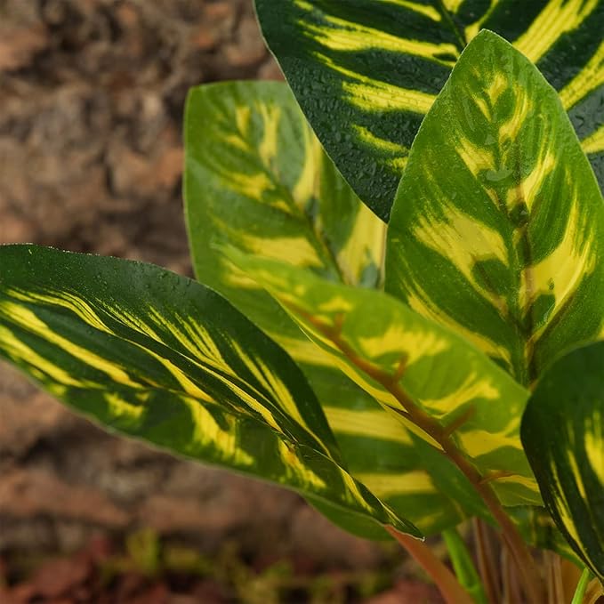 Reptile Terrarium Decor Plants, Bearded Dragon Tank Accessories fit Crested Gecko Leopard Lizard Chameleon Ball Python Snake Frog - Yellow Fake Prayer Peacock Plants
