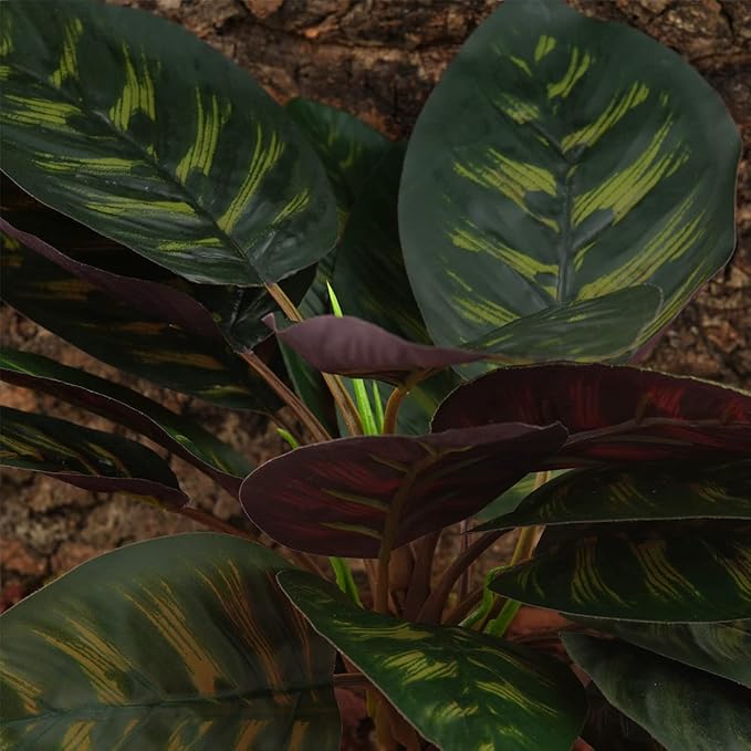 Reptile Terrarium Decor Plants, Bearded Dragon Tank Accessories fit Crested Gecko Leopard Lizard Chameleon Ball Python Snake Frog - Purple Fake Prayer Peacock Plants