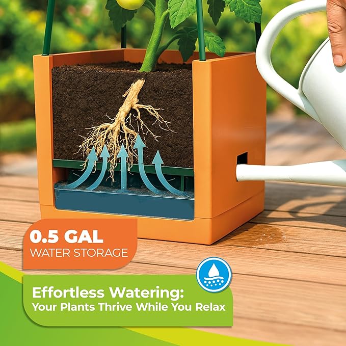 - Integrated watering system: The planter includes a 2-liter water reservoir that delivers consistent moisture to the roots. This reduces the need for frequent watering, prevents overwatering, and promotes healthy root development.