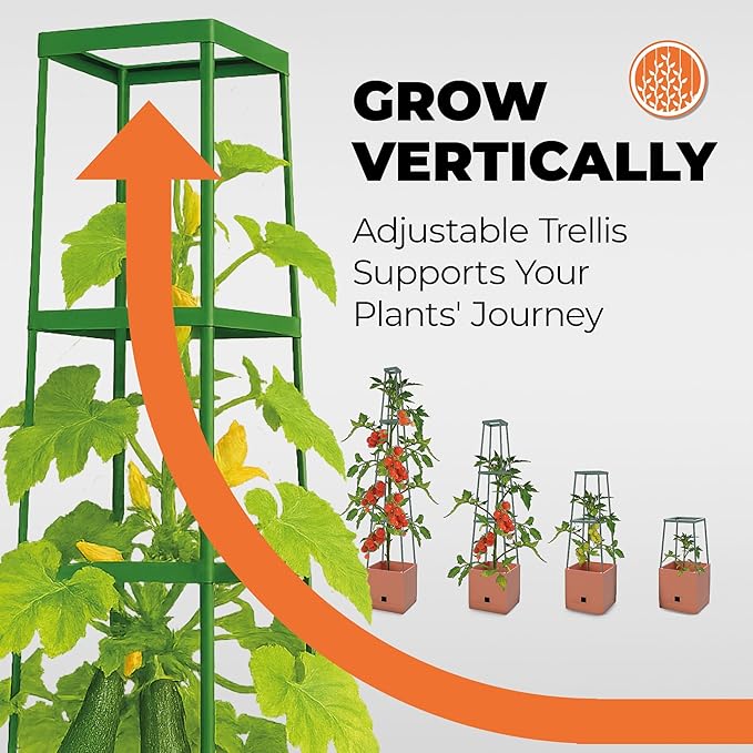 - Expandable trellis system: The built-in support structure can be extended to four different heights (24", 36", 48", and 60"), allowing it to grow along with your plants. This makes it easier to care for and harvest your crops at a comfortable, back-friendly height.