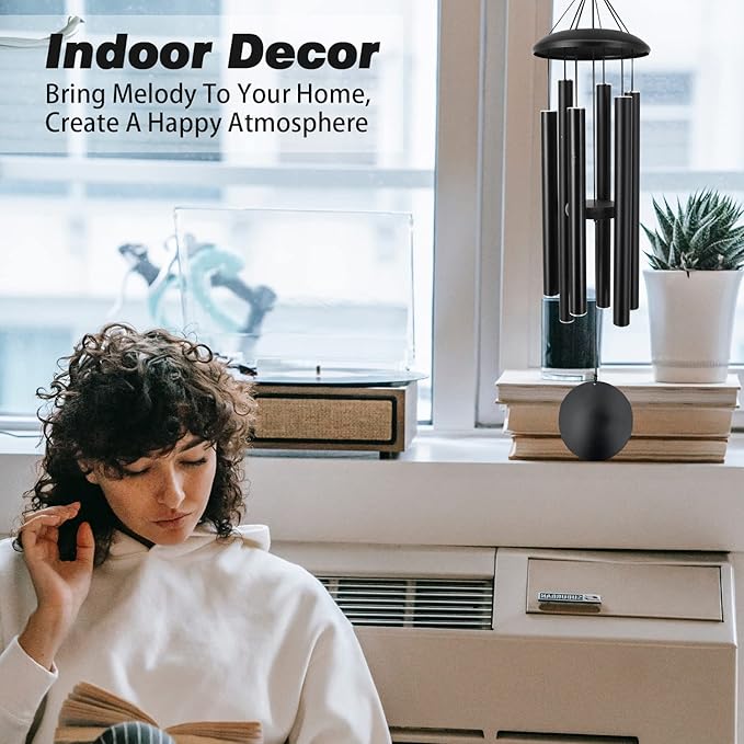 ASTARIN Outdoor Memorial Wind Chimes, 36 in with 6 Heavy Tubes, Deep Tone for Garden Hanging Decor, Sympathy Gifts. Black