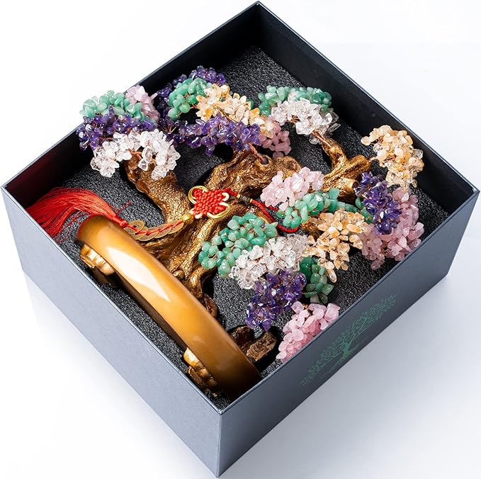 Natural Chakra Gemstone Crystal Bonsai Tree of Life Large Feng Shui Money Tree for Luck and Wealth Desk Decoration(1,251 Gem Count)