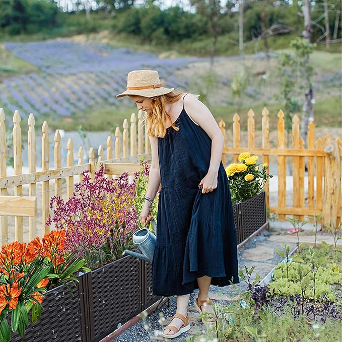 Garden Boxes Outdoor Raised Beds for Gardening Rectangular Planter Boxes Outdoor Planter Garden Box with Drain Outlet, Easy Assembly
