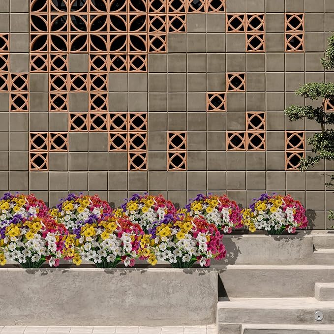 15 Bundles Artificial Flowers Outdoor UV Resistant Fake Silk Plants Plastic Faux Shrubs Outside Front Porch Window Box Garden Home Hanging Planter Decoration (Mixed Color)
