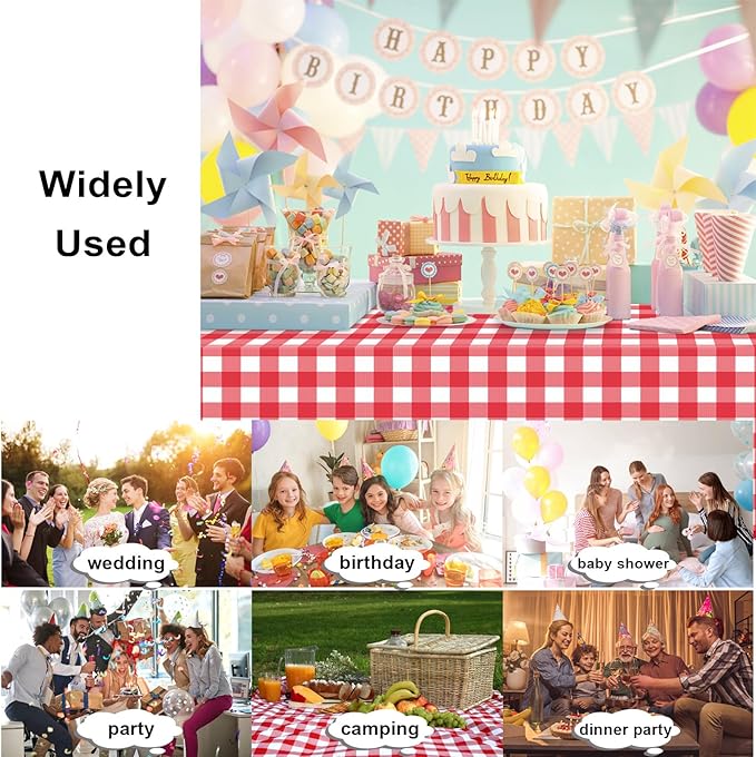 - 【Enjoy Your Party】The red and white checkered tablecloth features a red theme to add a fun pop of color to every of your gatherings. Impress your guests throughout the party. When the party is over, you can spend more time with family or friends and less time cleaning up. A red checkered tablecloth is a beautiful addition to any party or event