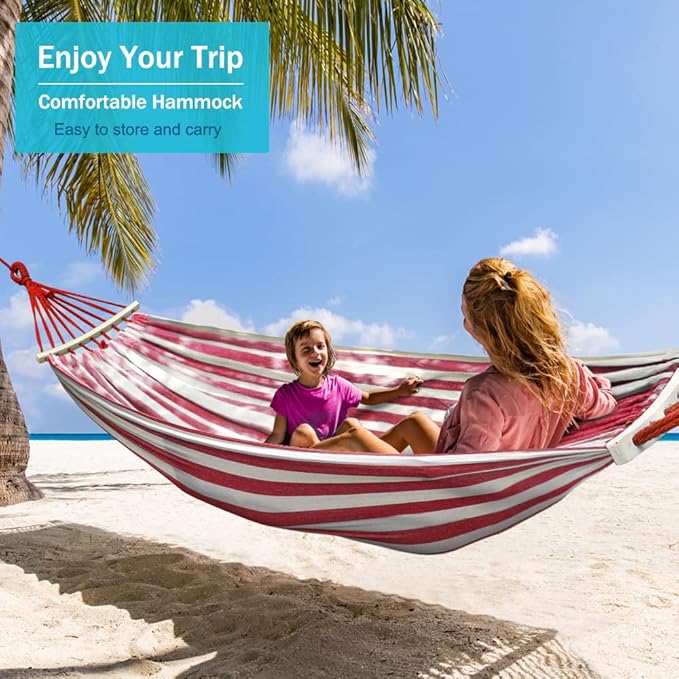MOSFiATA Hammocks Portable Camping Hammock Upgraded 550lb Thickened Fabric Single Hammocks with Two Anti Roll Balance Beam and Tree Straps for Camping, Patio, Backyard, Outdoor(Red White)