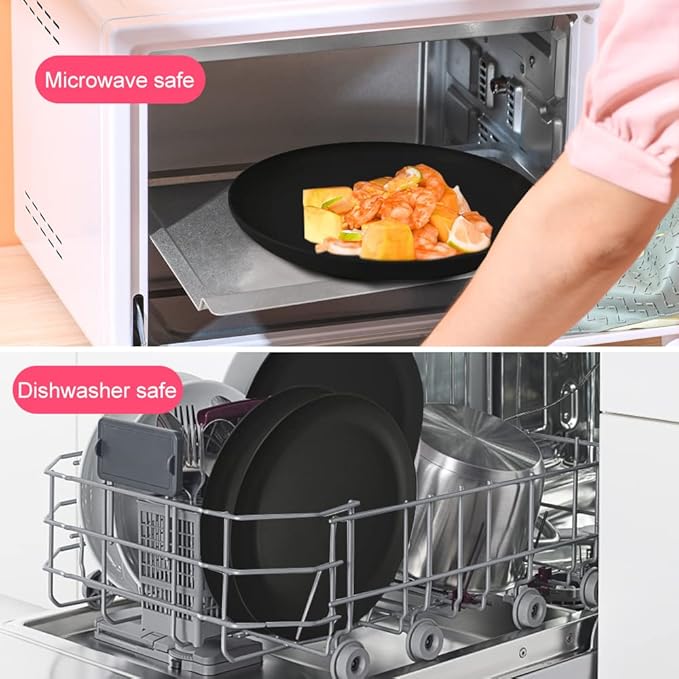 - Lightweight Unbreakable Dishes: Our Dinnerware Set is designed with space-saving style and smooth round edges. They are all light to hold, and super sturdy and durable, unbreakable even if they are dropped!No more worries about breaking, chipping, or dropping heavy dishes safe for kids and adults.