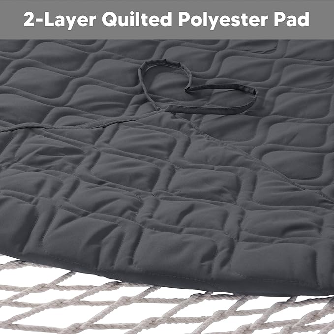 - Reversible Quilted Polyester Pad: Two-layer quilted polyester fabric with poly fiber filling is cozier, and best for camping and outdoor activities. It will not fade after long time use. And the pad is detachable for easy cleaning. A polyethylene stuffing head pillow offers superior comfort. The reinforced ties will keep the pad in place.