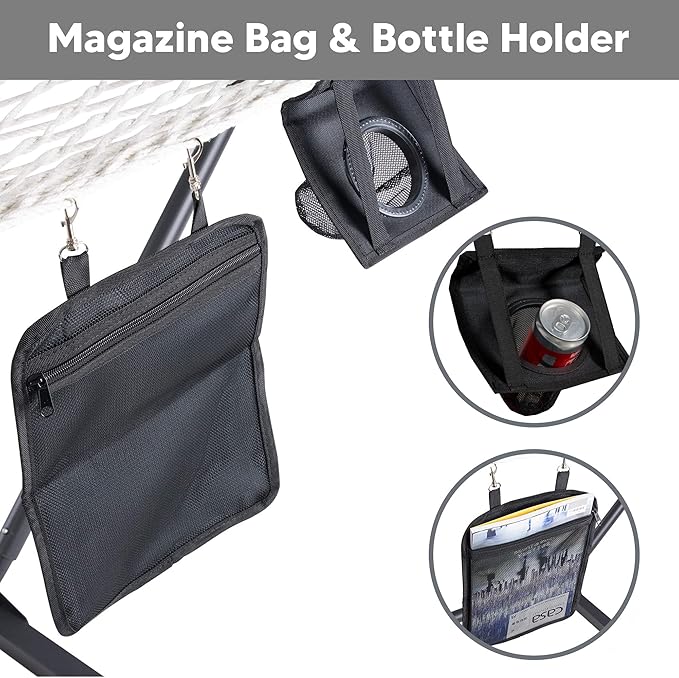 SUNCREAT Hammocks for Outside with Stand, Extra Large 2 Person Hammock with Stand, Dark Gray Drops