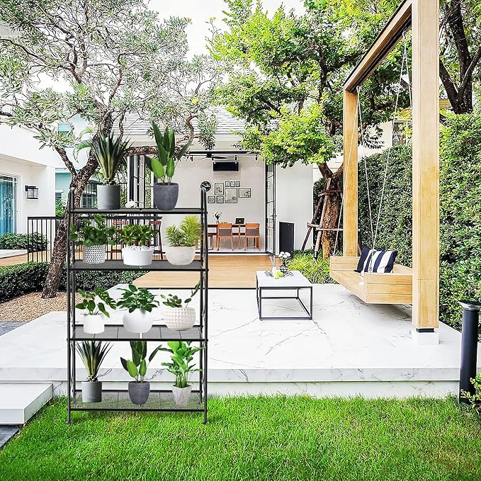 Plant Stand, 4 Tier Plant Shelf for Indoor Outdoor, Heavy Duty Metal Tall Plant Stands Holder Rack for Living Room Balcony and Garden, Black