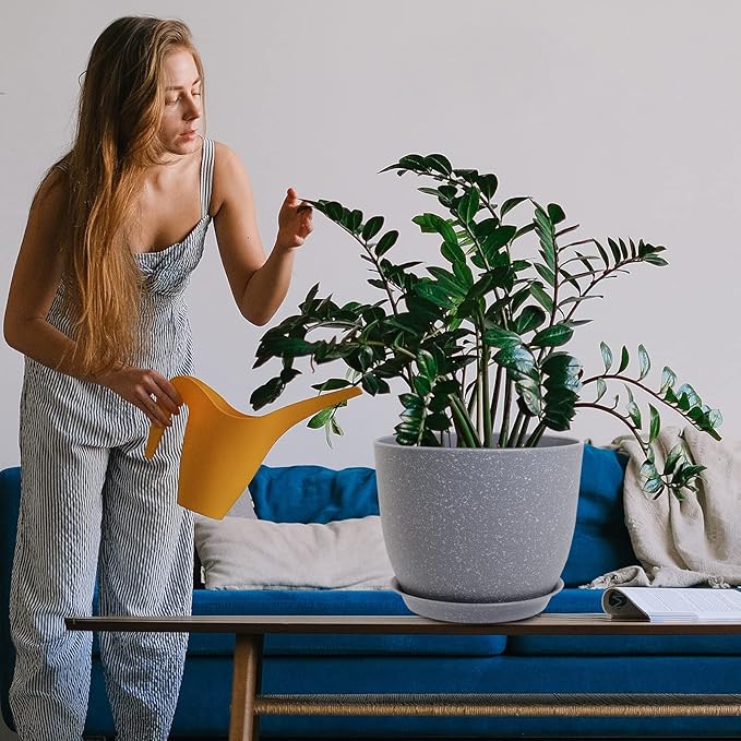 WOUSIWER Plant Pots 10/9/8 inch, Set of 3 Modern Decorative Plastic Planters with Drainage Holes and Saucers for House Plants Indoor Flowers Plants, Grey Speckles