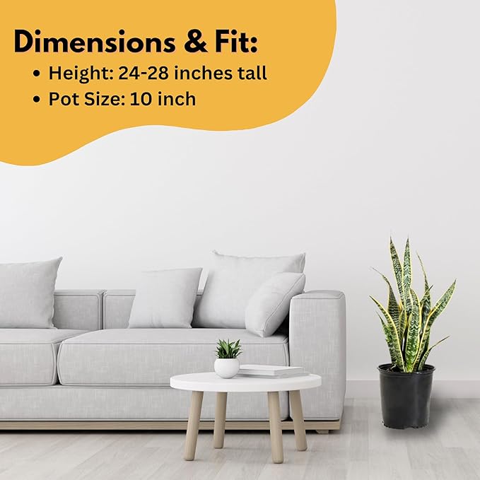 - 🌿 Bold Variegated Foliage: The Sansevieria Laurentii features tall, sword-like leaves edged in golden yellow, offering a striking vertical accent in any room.