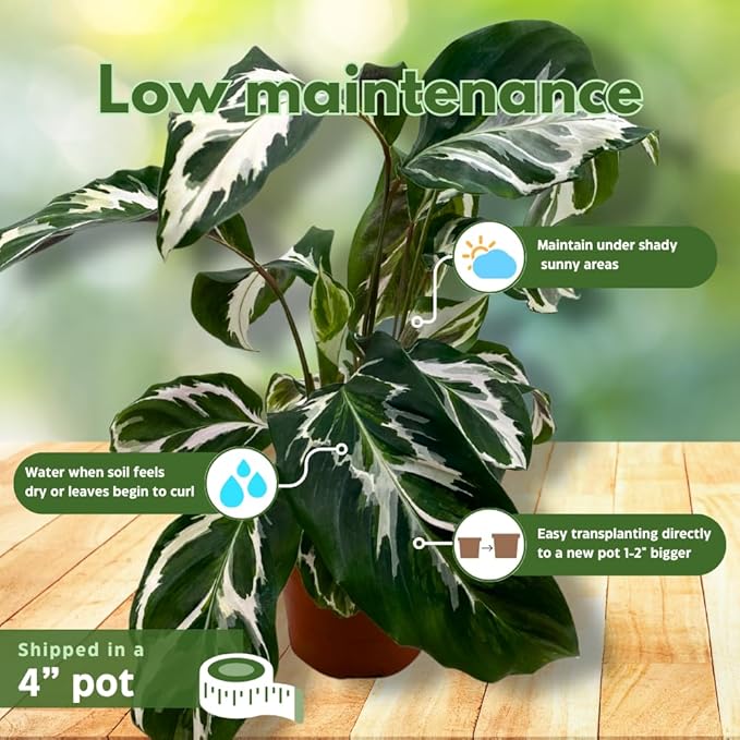 BubbleBlooms Calathea Stella in a 4 inch Pot Rare Variegated Prayer Plant, Cathedral Plant, Green and White