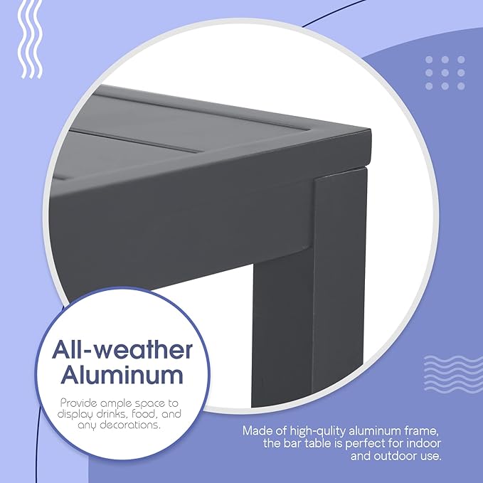 Soleil Jardin Bar Table High Top Table with All-Aluminum Frame Rectangular Pub Table for Indoor & Outdoor Use, Easy Assembly & Low Maintenance, Dark Grey